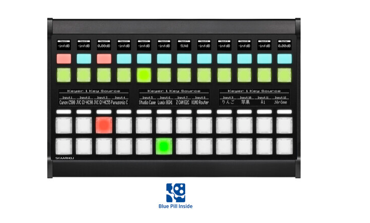 Das SKAARHOJ Master Key 48 mit Blue Pill Inside (schwarz) ist ein professionelles, eigenständiges Schaltpult für den Rundfunkbereich mit OLED-Displays, RGB-Anzeige-LEDs und NKK-Tasten, das für die modulare Steuerung von Live-Produktionen mit Blue Pill Inside-Technologie entwickelt wurde.