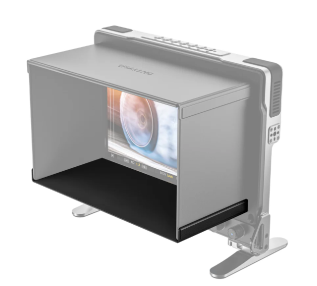 Diese untere Blende spielt eine wichtige Rolle bei der Reduzierung unerwünschter Blendungen und der Verbesserung der Sichtbarkeit des Bildschirms in hellen Aufnahmeumgebungen. Sie ist besonders nützlich für Kameraleute, DITs und Kameramänner, die im Freien oder unter starken Lichtverhältnissen arbeiten, wo eine genaue Bildüberwachung unerlässlich ist.