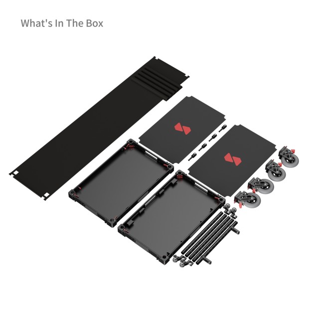 Der aus luft- und raumfahrttauglichem Aluminium und industrietauglichen Materialien gefertigte Wagen kann von einem einzigen Teammitglied in nur 5 Minuten zusammengebaut oder zusammengeklappt werden. Das faltbare Design lässt sich für einen einfachen Transport auf eine Höhe von nur 17,2 cm zusammenklappen und eignet sich daher sowohl für Studios in der Stadt als auch für abgelegene Drehorte.