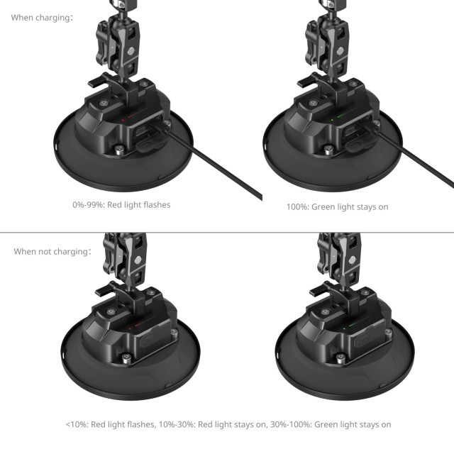 Die Montagebasis aus Aluminiumlegierung verfügt über mehrere Schnittstellen, darunter verdrehsichere 1/4"-20- und 3/8"-16-Gewindebohrungen sowie 3/8"-16-ARRI-Befestigungslöcher. Diese Vielseitigkeit ermöglicht die Befestigung von Magic Arms für die Montage von Action-Kameras oder die Sicherung der Sicherheitsleine für dynamische Aufnahmen. Darüber hinaus ist eine Schutzabdeckung enthalten, um die Sauberkeit und Lebensdauer des Saugnapfes bei Nichtgebrauch zu gewährleisten.