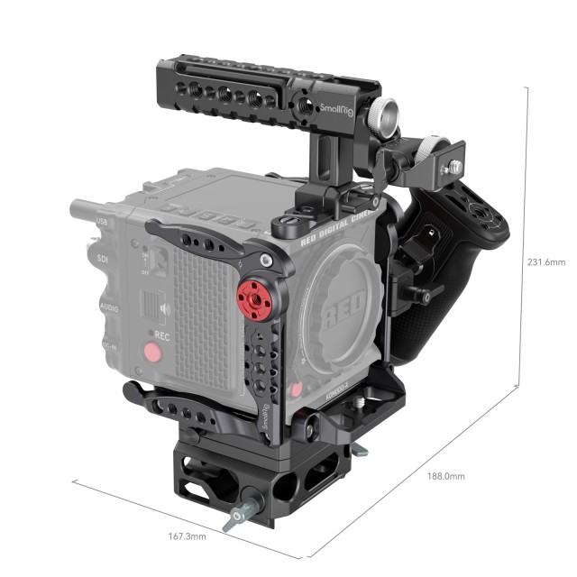 Das SmallRig Advanced Cage Kit für RED KOMODO-X 4335 wurde entwickelt, um Handheld-Aufnahmen zu erleichtern, Zubehör zur Erweiterung der Schnittstelle bereitzustellen und das Kameragehäuse zu schützen. Das Kit umfasst einen Käfig (obere Platte + linke Seitenplatte + rechte Seitenplatte + Grundplatte), Objektivmontageadapter Unterstützung, oberen Griff, Monitorhalterung, Manfrotto Montageplatte Kit und drehbaren Seitengriff. Die Monitorhalterung kann den Monitor zu installieren, unterstützen Kippen 180 °, 360 ° Schwenken Einstellung und bequeme Überwachung. Der obere Handgriff kann durch die NATO-Klemme installiert werden, die leicht zu demontieren und zu installieren ist; es kann vor und zurück eingestellt werden, nachdem sie durch den Inbusschlüssel zu erleichtern die Verwendung des LCD-Bildschirms auf der Oberseite der Kamera gelöst.