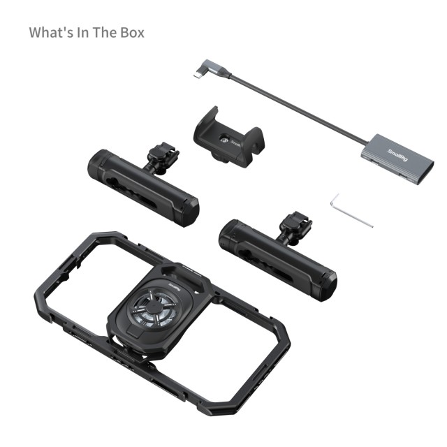 Das SmallRig All-in-One Thermal Live Streaming & Filming Handheld Phone Cage Kit 5276 ist ein umfassendes und integriertes Set für professionelle mobile Content-Ersteller. Dieses leichte Kit wurde für Komfort und Effizienz entwickelt und eignet sich perfekt für lange Live-Streams und kurze Videoaufnahmen. Das integrierte hocheffiziente 15-W-Kühlsystem sorgt für eine aktive Kühlung, um eine Überhitzung Ihres Smartphones bei längerem Gebrauch zu verhindern, und dient gleichzeitig als multifunktionale Erweiterungsplattform für die Montage von Zubehör wie Leuchten und Mikrofonen. Die stufenlose Drehung der Seitengriffe bietet verbesserte Stabilität und Komfort und erleichtert die Aufnahme von flüssigen, professionellen Aufnahmen. Mit einem vollständigen Schnellverschlusssystem ermöglicht der Cage schnelle und sichere Übergänge zwischen horizontaler und vertikaler Aufnahme und erleichtert den schnellen Wechsel anderer Geräte. Ein zentrales Merkmal dieses Kits ist der 4-in-1-USB-C-Hub, der Ladefunktion, Mikrofoneingang, Audioüberwachung und Datenübertragung in einem einzigen Anschluss vereint, wodurch Ihr Setup vereinfacht und Ihr Workflow optimiert wird.