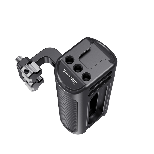 Der SmallRig HSS2425 Aluminium-Universal-Seitengriff wurde entwickelt, um Videofilmern ein komfortables Handheld-Aufnahmeerlebnis zu ermöglichen. Mit dem eingebauten Sechskant an der Unterseite kann der Griff nach oben und unten verstellt werden, je nach Bedarf. Um den Griff auf der anderen Seite des Käfigs zu verwenden, entfernen Sie mit dem Sechskant das verbindende Metallteil des Griffs und ändern Sie die Richtung. Der Griff kann mit zwei 1/4"-20 Schrauben an der linken oder rechten Seite des Kamerakäfigs befestigt werden. Er wird mit einem kalten Fuß und drei 1/4"-20-Gewindebohrungen geliefert, die die Montage von Zubehör ermöglichen. Sie wiegt nur 220 g und hat ein Aluminiumgehäuse mit einer rutschfesten Silikongel-Beschichtung, die komfortable und einfache Aufnahmen aus der Hand ermöglicht. Dieser Griff kann auch mit einer Handschlaufe für zusätzliche Sicherheit verwendet werden.