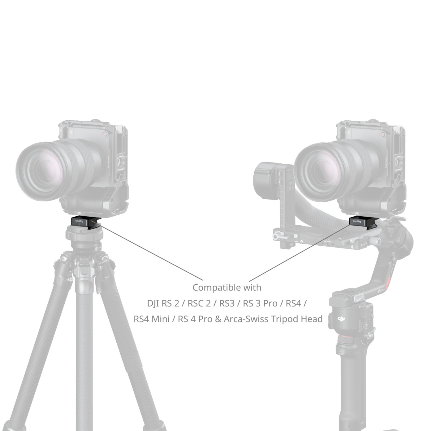 Die Platte ist kompatibel mit Arca-Typ-Stativen und Stabilisatoren der DJI RS-Serie (einschließlich RS 2, RSC 2, RS 3, RS 3 Pro, RS 4, RS 4 Pro und RS 4 Mini) und ermöglicht einen effizienten Wechsel zwischen Stativ- und Gimbal-Setups, um den Arbeitsablauf zu verbessern. Ein Doppelkopfschlüssel für die einfache Montage und Demontage ist im Lieferumfang enthalten.