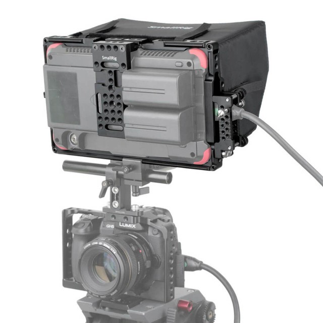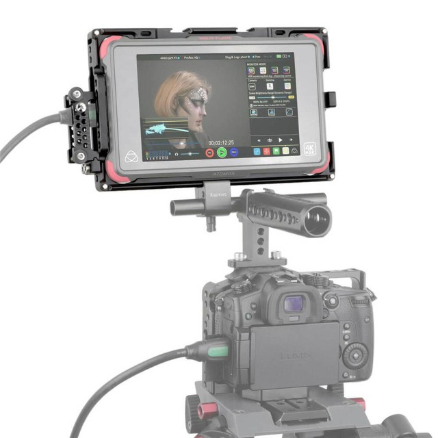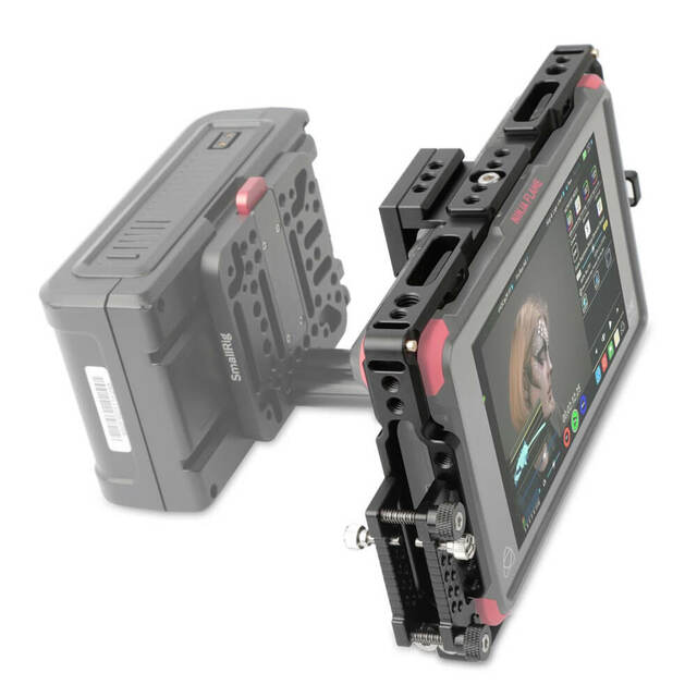 SMALLRIG Atomos Shogun und Ninja Assassin Monitor Cage 1788 ist ein formschlüssiger Schutzkäfig, der einen Zugang zum Anbringen von Batterie und Griffen ermöglicht. Es bietet einen guten Schutz für das HDMI-Kabel. Und die Anti-Off-Vorrichtung verhindert, dass die SSD-Karte verrutscht. Die Befestigung des Schultergurtes bietet Ihnen mehr Komfort während der Aufnahme. An beiden Enden der Oberseite befindet sich eine NATO-Schiene, an der die SMALLRIG-Schienenklemme 1254 mit 15-mm-Stange befestigt werden kann. In der Zwischenzeit können Sie auch den SMALLRIG-Kaltschuh 1241 anbringen, um mehr Zubehör anschließen zu können. An der Unterseite befindet sich eine NATO-Schiene, die eine schnelle Befestigung von NATO-Komponenten ermöglicht. Dieses Gerät kommt mit einer Reihe von 1/4"-20 & 3/8"-16 Zubehörbefestigungslöchern für erweiterte Funktionen.