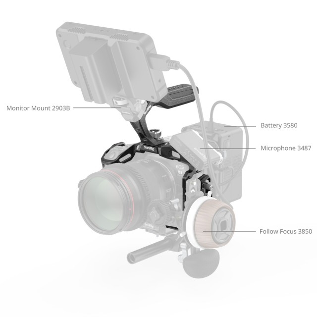 Das Kit ist mit einer Reihe von Erweiterungsschnittstellen wie 1/4"-20-Gewindebohrungen, 1/4"-20-Aufnahmebohrungen, 3/8"-16-Gewindebohrungen, Kaltlichthalterungen, Arca-Swiss-Schnellwechselplatte, ARRI 3/8"-16-Aufnahmebohrungen, QD-Schnittstellen und Gurtschlitzen ausgestattet, die die Befestigung von Monitoren, Mikrofonen, Stativen, Follow-Focus, Griffen und anderem Zubehör für die vielseitige Erstellung von Videoinhalten ermöglichen.