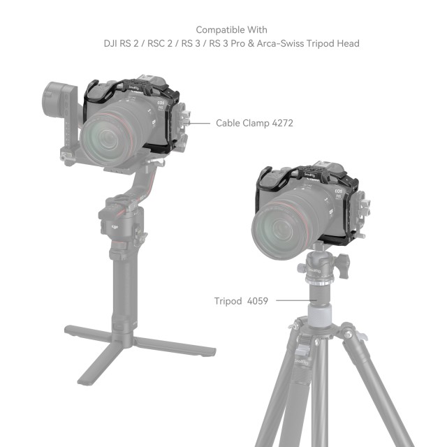 SmallRig "Black Mamba" Kamerakäfig für Canon EOS R6 Mark II 4161 ist zum Schutz der Kamera und zur Befestigung von Zubehör konzipiert. Es verriegelt die Canon EOS R6 Mark II über eine untere 1/4"-20 Schraube und zwei seitliche Verschlussadapter mit Gummipuffern, die Kratzer verhindern. Mit seinem "Black Mamba"-Design bietet dieser Käfig vollen Zugang zu allen Kameratasten und mehrere Befestigungsmöglichkeiten für Zubehör. Die ARRI 3/8"-16 Aufnahmebohrung unterstützt den Top Handle 3765 / 2165C und die Monitorhalterung 2903B; die 1/4"-20 Gewindebohrungen passen zum Side Handle 4016; die eingebaute Cold Shoe Halterung nimmt Mikrofon und LED-Videoleuchte auf; und die Löcher für Schulter- und Handgelenkgurte funktionieren mit dem Hand Strap 3848 oder dem Shoulder Strap PSC2428. An der Unterseite befindet sich eine integrierte Arca-Swiss-Schnellwechselplatte für DJI RS 2 / RSC 2 / RS 3 / RS 3 Pro Gimbals oder Arca-Stative zum schnellen Wechsel zwischen Handheld-, Gimbal- und Stativmodus sowie eine QD-Halterung für eine Schnellwechsel-Schultergurtschnalle. Außerdem ist ein doppelseitiger Schraubendreher für eine einfache Montage und Demontage enthalten.