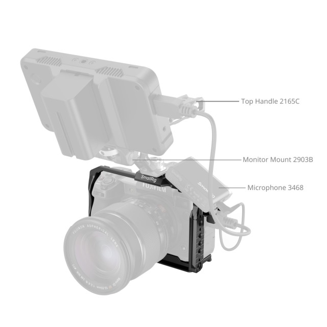 SmallRig Cage für FUJIFILM X-H2 / X-H2S 3934B wurde entwickelt, um die Kamera zu schützen und gleichzeitig eine Vielzahl von Erweiterungsschnittstellen zu bieten. Der Käfig befestigt die Kamera sicher mit einer 1/4"-20 Schraube an der Unterseite und zwei seitlichen Positionierungsblöcken, zusammen mit mehreren eingebauten Anti-Rutsch-Silikonpads, um Kratzer zu vermeiden. Außerdem behindert er nicht den Zugang zu den Schnittstellen der Kamera, dem LCD-Bildschirm oder dem Batteriefach.
