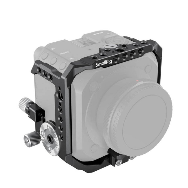 Der SmallRig-Käfig für die Panasonic LUMIX BGH1 Cinema 4K Camera 3024 bietet Schutz und eine Vielzahl von Befestigungsmöglichkeiten für Zubehör für die Panasonic DC-BGH1 Cinema Camera. Der Käfig wird mit drei 1/4"-20 Schrauben an der Kamera befestigt, eine oben und zwei unten, um ein Verdrehen zu verhindern. Der Käfig blockiert keine Tasten oder Schnittstellen und beeinträchtigt die XLR-Nutzung nicht. Darüber hinaus verfügt er über integrierte Schlitzschraubendreher an der Unterseite für eine schnelle Installation.