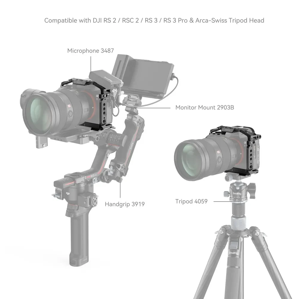 Der SmallRig A7RIII 2087 Käfig wurde exklusiv für die Sony A7RIII/A7M3/A7III entwickelt. Er bietet eine Vielzahl zusätzlicher Befestigungsmöglichkeiten und ermöglicht es, das maximale Potenzial der Kamera je nach den Bedürfnissen des Kameramanns während der Aufnahme zu entfalten. Es könnte ein Mikrofon, einen Magic Arm 1497/1498/2070 und einen Monitor anschließen. Die Arri-Positionierungspunkte auf der Oberseite sind mit den Arri-Positionierungsstiften kompatibel, ebenso wie der Magic Arm mit dem Magic Arm 2026 Anti-Rotationsadapter für einen Monitor oder einen drahtlosen Bildsender.