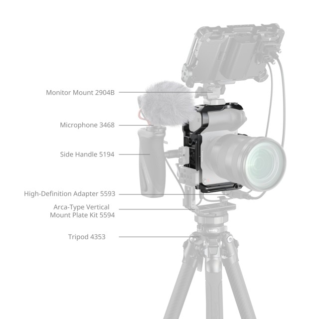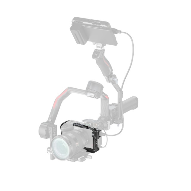 Die abnehmbare Deckplatte verfügt über eine NATO-Schiene, an der der XLR-Top-Handgriff von Sony oder der drehbare Top-Handgriff von SmallRig (ID 4152) angebracht werden kann, ohne den EVF zu beeinträchtigen. Der Cage verfügt über mehrere Befestigungspunkte, darunter 1/4"-20-Gewindebohrungen, 3/8"-16-ARRI-Befestigungslöcher und eine „HawkLock”-NATO-Schiene für die schnelle Befestigung von Zubehör wie Seitengriffen (ID 4485) und Top-Handles (ID 4483). Eine Kaltschuhhalterung ermöglicht die Befestigung von Geräten wie dem DJI Mic 2 oder LED-Leuchten, während eine QD-Buchse an der Basis Schultergurte für eine bessere Tragbarkeit aufnimmt. Die Basis ist außerdem mit einem magnetischen Inbusschlüssel ausgestattet, der eine schnelle Montage und Demontage ermöglicht.