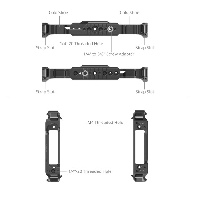 3. Der Käfig verfügt über mehrere integrierte Befestigungsschnittstellen für die Erweiterung von Zubehör wie Magic Arms, Monitorhalterungen und mehr.