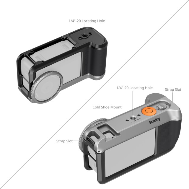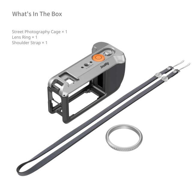 Der SmallRig Dedicated Street Photography Cage für DJI OSMO Action 6 5891kombiniertraffiniertes Retro-Kameradesign mit praktischer Funktionalität für Straßenfotografen, die sowohl Wert auf Ästhetik als auch auf Leistung legen. Das Kit enthält einen Street Photography Cage, einen Schultergurt und einen Objektivschutzring.