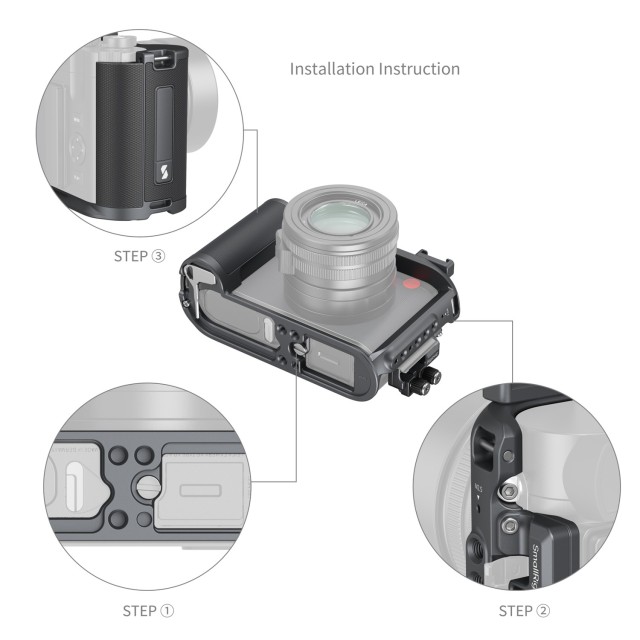 3. Das Zweipunkt-Verriegelungssystem erhöht die Stabilität und verhindert ein Durchbiegen. Sichern Sie Ihre Kamera mit einer Schraube an der Unterseite und einer M2,5-Schraube an der linken Seite, um einen zuverlässigen Halt beim Fotografieren zu gewährleisten.