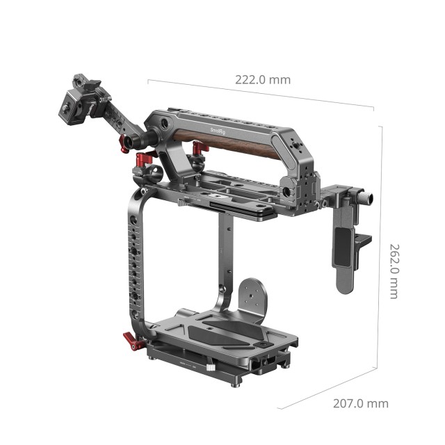 Das SmallRig Cage Kit für Sony BURANO 4571 wurde zum Schutz der Sony BURANO Kamera und zur Befestigung von Zubehör entwickelt. Es verfügt über ein Full-Wrap-Design, um das Kameragehäuse effektiv zu schützen. Der obere Griff hat ein bequemes, ergonomisches Design mit Holzmaterial für einen angenehmen Griff und eine hochwertige Textur; er unterstützt eine schnelle Installation und eine Vorwärts-/Rückwärtsverstellung für eine einfache Anpassung des Schwerpunkts und einen müheloseren Griff. Die Monitorhalterung ersetzt die ursprüngliche Monitorhalterung, um einen schnellen Wechsel zwischen LCD- und Suchermodus zu ermöglichen. Die HawkLock-Struktur ermöglicht eine schnelle Einstellung. Die obere modulare 15mm Dual-Stab-Klemme ist besser geeignet für Handheld-Aufnahmen, leicht zu erweitern, die Follow-Fokus und anderes Zubehör, im Vergleich mit der Verwendung von 15mm LWS Grundplatte Schwerpunkt niedriger ist, wodurch der Druck auf den Stativkopf. HDMI-Kabelklemme, um die Schnittstelle und Signalübertragung Stabilität zu schützen, und die drahtlose Videoübertragung Halterung Lösung für die kompakte Installation von drahtlosen Videoübertragung.15mm LWS Grundplatte mit Quick-Release-Design, kann schnell an der Unterseite des Käfigs montiert werden, bequem für Multi-Szene wechseln. Der Bausatz enthält ARRI 3/8"-16 Gewindebohrungen, 1/4"-20 Fixierbohrungen, 1/4"-20 Gewindebohrungen, 3/8"-16 Gewindebohrungen, QD-Buchsen, H21 NATO-Schienen, H18 Cold Shoes, ARRI Dovetail Clamp, etc. Der obere Griff und die 15-mm-LWS-Grundplatte lassen sich ohne Werkzeug schnell demontieren und montieren, um sie bequem zu lagern und zu transportieren.