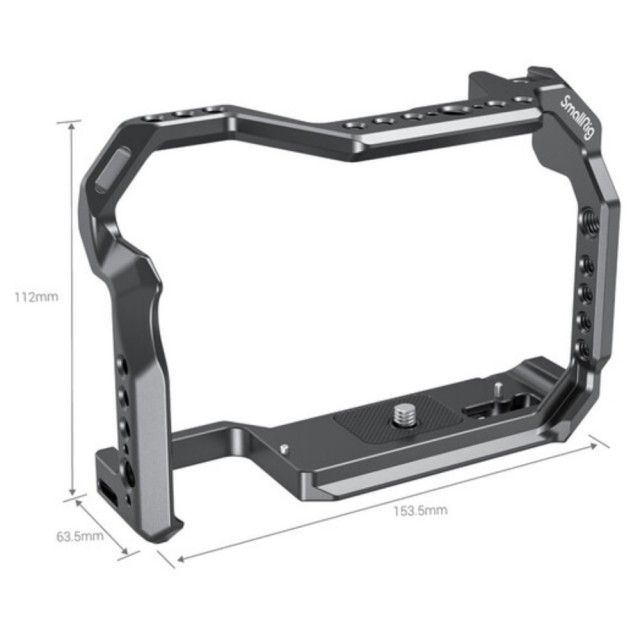 Der Käfig ist so konstruiert, dass er zur Kamera passt, ohne den Zugang zu Anschlüssen oder Schlitzen zu blockieren, und verfügt über zahlreiche 1/4"-20- und 3/8"-16-Zubehörbefestigungsgewinde, eine NATO-Schiene, Gurtschlitze und eine Fußhalterung. Der verstellbare Seitengriff aus Holz wird mit zwei 1/4"-20 Schrauben an beiden Seiten des Käfigs befestigt und ist mit Gewinden für die Montage von Zubehör und einem Stiefelhalter ausgestattet. Eine Kabelklemme wird am Käfig befestigt, um zu verhindern, dass die HDMI- und USB-Kabel herausgerissen oder abgetrennt werden.