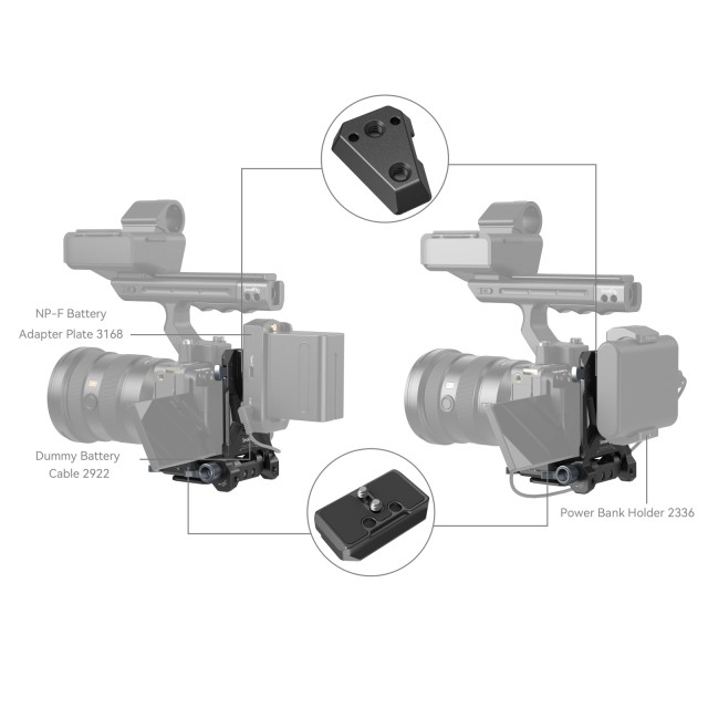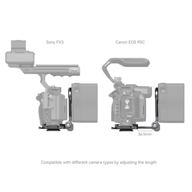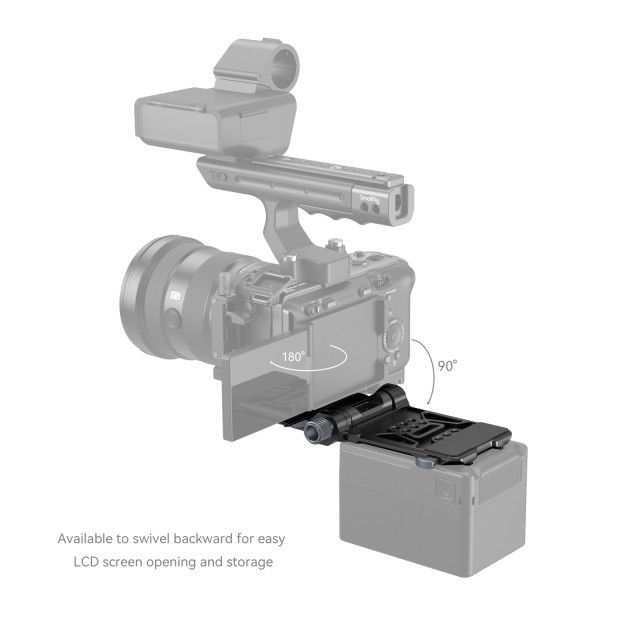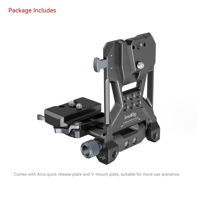 DasSmallRig Compact V-Mount Battery Mounting System 4064 ist eine kompakte, leichte und praktische All-in-One-Montagelösung für V-Mount-Akkus. Das Kit besteht aus einer V-Mount-Akkuplatte, einer Arca-Schnellwechselplatte und einer V-Mount-Platte. Insbesondere die Grundplatte kann gestreckt werden, um spiegellose / DSLR-Kameras verschiedener Größen zu montieren, was durch die werkzeuglose Installation und Einstellung schnell und zeitsparend ist. Über jeden Käfig mit eingebauter Arca-Platte hinaus kann er über die Arca-Swiss-Schnellwechselplatte direkt die Kamera und DJI-Gimbals der RS-Serie unterstützen. Die V-Mount-Akkuplatte mit 1/4"-20-Gewindebohrungen und einer V-Mount-Platte bietet weitere Lösungen für die Stromversorgung durch Anbringen der NP-F-Akku-Adapterplatte Professional Edition 3168 oder des Halters für tragbare Power Banks BUB2336. Der Wechsel zwischen Hand- und Stativaufnahmen ist dank der unteren Arca-Platte ebenfalls einfacher. Die um 90 Grad drehbare V-Mount-Akkuplatte lässt genügend Platz für den Flip-Screen, wobei die Schwenkdämpfung verhindert, dass Ihr Gerät herunterfällt. Für mehr Kompaktheit und Tragbarkeit kann sie zusammengeklappt werden.