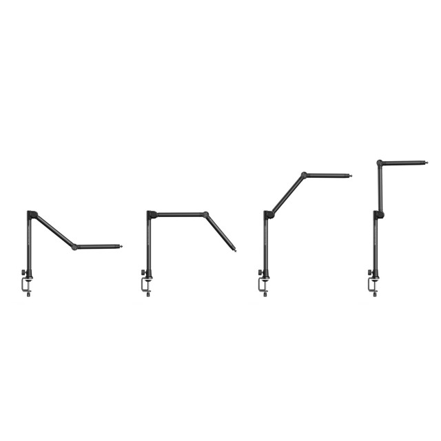 SmallRig Desk Overhead Photography / Live Streaming Bracket 4324 besteht aus einer dreiteiligen Tischhalterung, einem Telefonclip, einem Kugelkopf und Kabelbindern, die in erster Linie zum Anschluss von Geräten wie Telefonen, spiegellosen Kameras und Webcams für Live-Streaming, Videokonferenzen, Overhead-Fotografie, Unboxing-Videos und mehr verwendet werden. Die Tischhalterung mit einer ⌀30 mm langen zentralen Stange ist aus einer Aluminiumlegierung gefertigt, die eine robuste Stabilität bietet und bis zu 2 kg tragen kann. Der dreiteilige Auslegerarm ist mit hydraulischen Dämpfungsgelenken verbunden, die eine hängende Positionierung an jedem Punkt ermöglichen und die Sicherheit der Ausrüstung gewährleisten, indem sie ein plötzliches Lösen verhindern und gleichzeitig eine präzise Einstellung der Aufnahmewinkel ermöglichen. Der integrierte Kugelkopf mit einer 1/4"-20-Schraube sorgt für flexible Einstellungen und breite Kompatibilität mit Kameras, Action-Kameras, Handys, Webcams und anderen Geräten für Aufnahmen aus verschiedenen Winkeln. Die untere Klemme kann Tischplatten mit einer Dicke von bis zu 7 cm sicher festhalten und passt zu den meisten Tischgrößen. Das Paket enthält außerdem 10 Kabelbinder zur Organisation von Gerätekabeln, die für einen sauberen und aufgeräumten Schreibtisch sorgen.