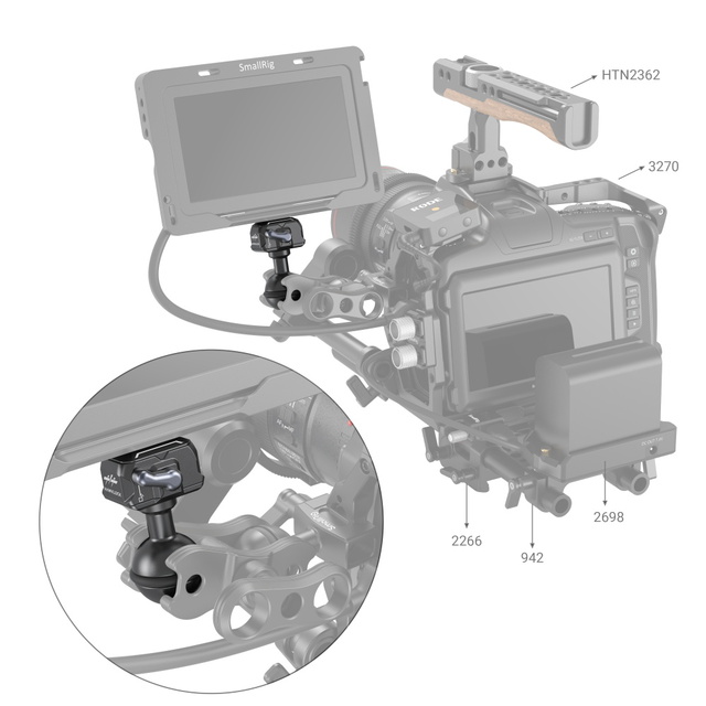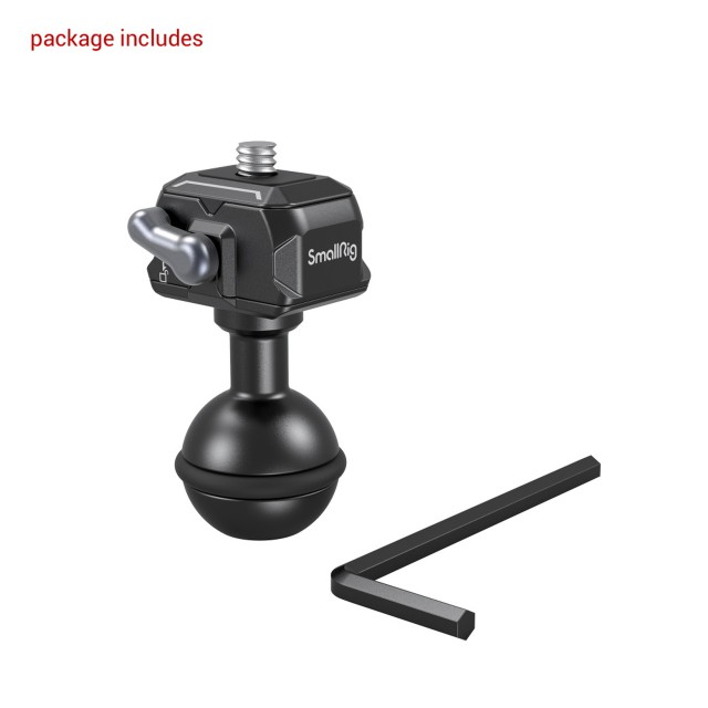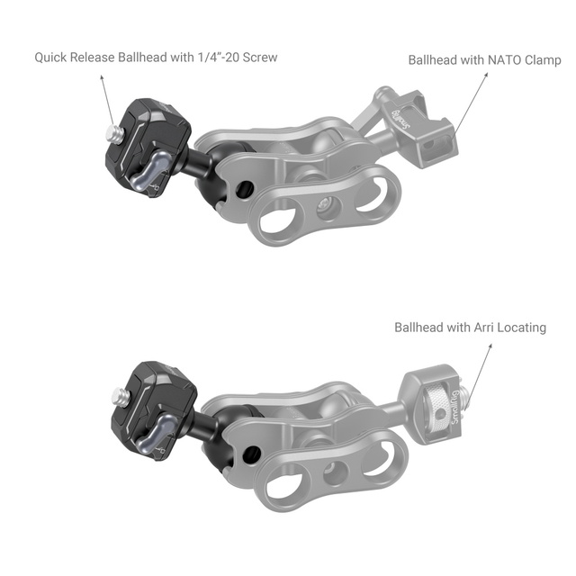 SmallRig 1/4"-20 Schnellwechsel-Kugelkopf 3600, ein Ende wird am Kugelkopf befestigt und das andere Ende der Schnellwechselplatte kann an Geräte mit 1/4"-20 Gewinde, wie Kameras, Monitore, Käfige, Montageplatten, angepasst werden. Sie lässt sich vertikal und stabil in die Grundplatte einrasten, ohne dass sie sich verbiegt. Er kann mit einem Klick ver- und entriegelt werden, was eine einfache Bedienung ermöglicht. Gummipuffer auf dem Kugelkopf erhöhen die Reibung zwischen dem Kugelkopf und der Klemme und sorgen so für eine sichere Verriegelung. Dieser Kugelkopf ist auch mit den Kugelköpfen an beiden Enden des Magic Arm 2070/2071/2072 austauschbar.