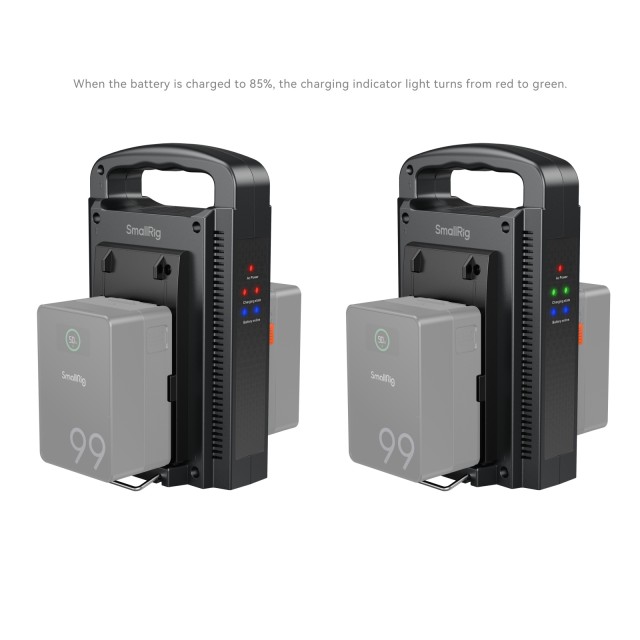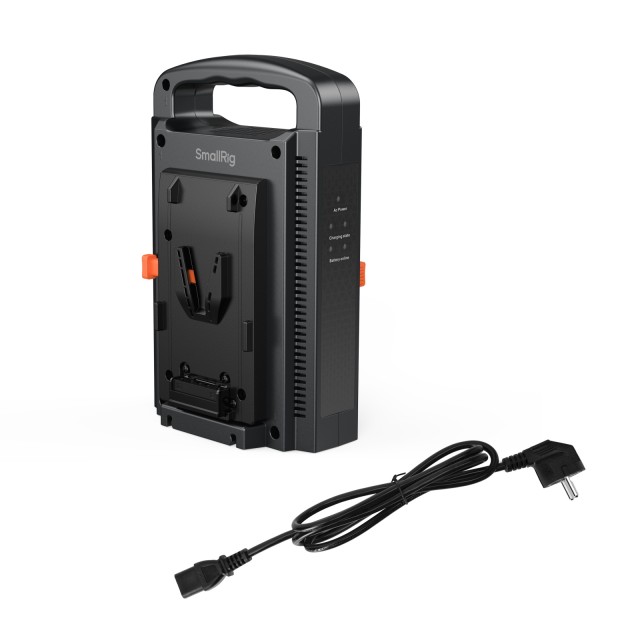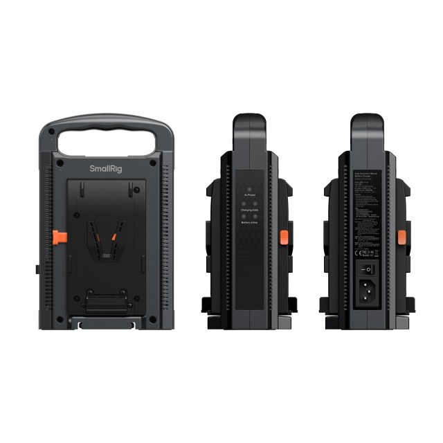 SmallRig Dual Channel V-Mount Battery Charger (European Standard) 4578 verfügt über zwei autonome Stromversorgungs- und Steuersysteme, die das gleichzeitige Laden von zwei V-Mount-Akkus ermöglichen und so die Effizienz steigern. Ausgestattet mit einem intelligenten Ladeschaltkreis, maximiert dieses Ladegerät den Schutz der Batterielebensdauer. Es wurde strengen Zuverlässigkeitsprüfungen unterzogen, darunter Schaltkreisinspektionen, Falltests und Bewertungen von Umgebungen mit hohen und niedrigen Temperaturen. Darüber hinaus verfügt es über internationale Zertifizierungen wie 3C, FCC und CE, die für Sicherheit und Zuverlässigkeit sorgen, damit Sie sich keine Sorgen machen müssen. Das Ladegerät unterstützt sowohl SmallRig V-Mount-Akkus als auch die meisten auf dem Markt erhältlichen V-Mount-Akkus. An der Seite des Ladegeräts befinden sich mehrere Betriebsanzeigen, wie z. B. die Betriebs-, Ladestatus- und Batterieeinbauanzeige, die eine Echtzeitüberwachung des Ladevorgangs ermöglichen. Dieses Ladegerät hat ein innovatives, farblich abgestimmtes Erscheinungsbild, und das Oberflächenmaterial wurde mit einer Spritzlackierung versehen, die den Glanz und die Textur erheblich verbessert. Schließlich verfügt das Ladegerät über einen bequemen Griff an der Oberseite, der den Transport erleichtert, während der klappbare Ständer an der Unterseite für einen stabilen und bequemen Betrieb sorgt, was es zum idealen Ladebegleiter für V-Mount-Akkus macht.