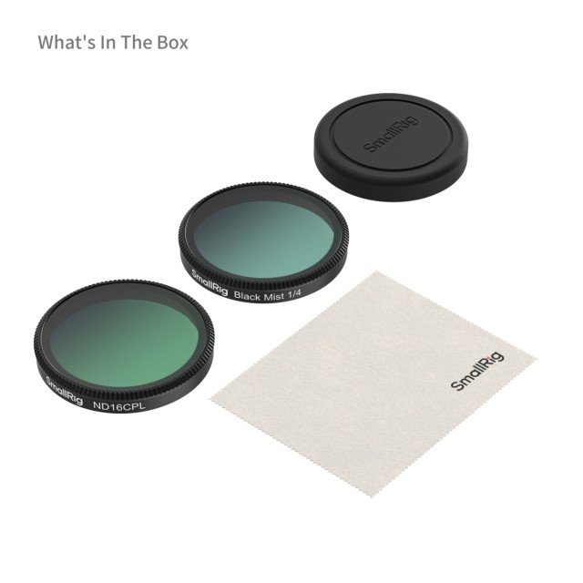 Dieses Kit enthält einen 1/4-Effekt-Schwarzfilter und einen ND16- und CPL-Filter, die eine optimale Aufnahmequalität in verschiedenen Umgebungen bieten und Ihre Aufnahmen mit lebendigen Farben bereichern. Der 1/4-Schwarzfilter mildert Glanzlichter und sorgt für einen traumhaften, kinoreifen Effekt. Der ND16- und CPL-Filter eliminiert Reflexionen und sorgt gleichzeitig für eine originalgetreue Farbwiedergabe, wodurch er sich ideal für Landschafts- und Architekturaufnahmen bei hellen Lichtverhältnissen eignet.