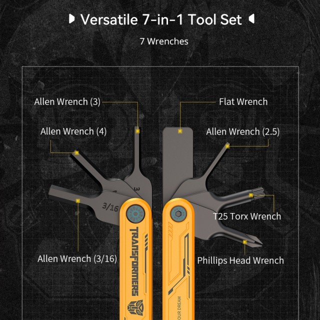 · 7-in-1-Multifunktions-Set: Enthält 4 Inbusschlüssel (2,5 mm, 3 mm, 4 mm, 3/16"), 1 Schlitzschraubendreher, 1 Kreuzschlitzschraubendreher und 1 Torx-T25-Schraubendreher