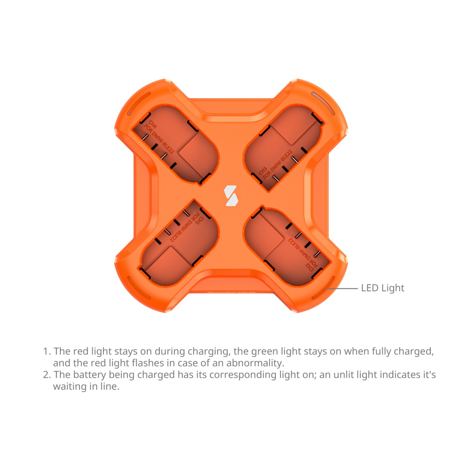 Die vier dedizierten Kanäle ermöglichen das gleichzeitige Laden von vier DMW-BLK22-Akkus und bieten effizientes Schnellladen, um anspruchsvolle Drehpläne zu erfüllen.