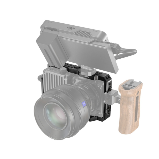 SmallRig Freefly Wave Cage 3532 wurde entwickelt, um die Freefly Wave zu schützen und Befestigungspunkte für Zubehör bereitzustellen, um professionelle Videoaufnahmen zu erleichtern und die Erfahrung der Ersteller zu verbessern. Der Käfig sichert die Kamera über 1/4"-20-Gewindebohrungen an der Unter- und Oberseite und sechs M3-Gewindebohrungen rundherum. Die zahlreichen eingebauten 1/4"-20-Gewindebohrungen und ARRI 3/8"-16-Aufnahmebohrungen unterstützen den Seitenhandgriff 2093, die Monitorhalterung 2903 usw.; die NATO-Schiene auf der linken Seite ermöglicht die schnelle Anbringung des Seitenhandgriffs 2187, um die Effizienz der Aufnahmen zu verbessern. Die modulare Rückenplatte verfügt über eine Reihe von 1/4"-20-Gewindebohrungen und ARRI 3/8"-16-Aufnahmebohrungen für verschiedene Batterieplatten, wie z. B. MD2801, 2987. Sie kann nach links und rechts verschoben werden, um die Schwerkraft der Ausrüstung anzupassen. Zwischen dem Käfig und der Kamera befinden sich Gummipuffer, um Kratzer zu vermeiden. Außerdem behält der Käfig den Zugang zu HDMI, Stromversorgung und Tasten bei, ohne die ursprünglichen Funktionen der Kamera zu beeinträchtigen.