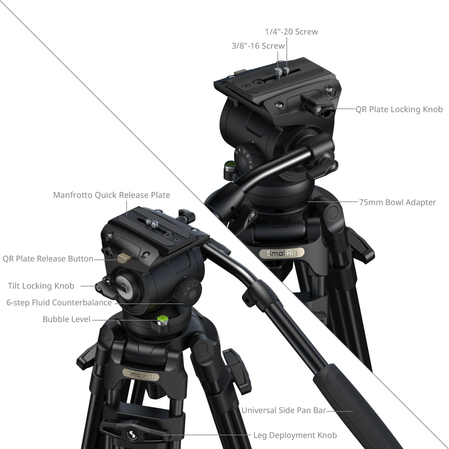 Das Stativ ist mit den Standard-Schnellwechselplatten Manfrotto 501PL und DJI Manfrotto kompatibel und lässt sich nahtlos in eine Vielzahl professioneller Kamera-Setups integrieren. Das FSD16 ist leicht und dennoch robust und besteht aus einer hochwertigen Aluminiumlegierung, die für Langlebigkeit sorgt, ohne die Tragbarkeit zu beeinträchtigen.