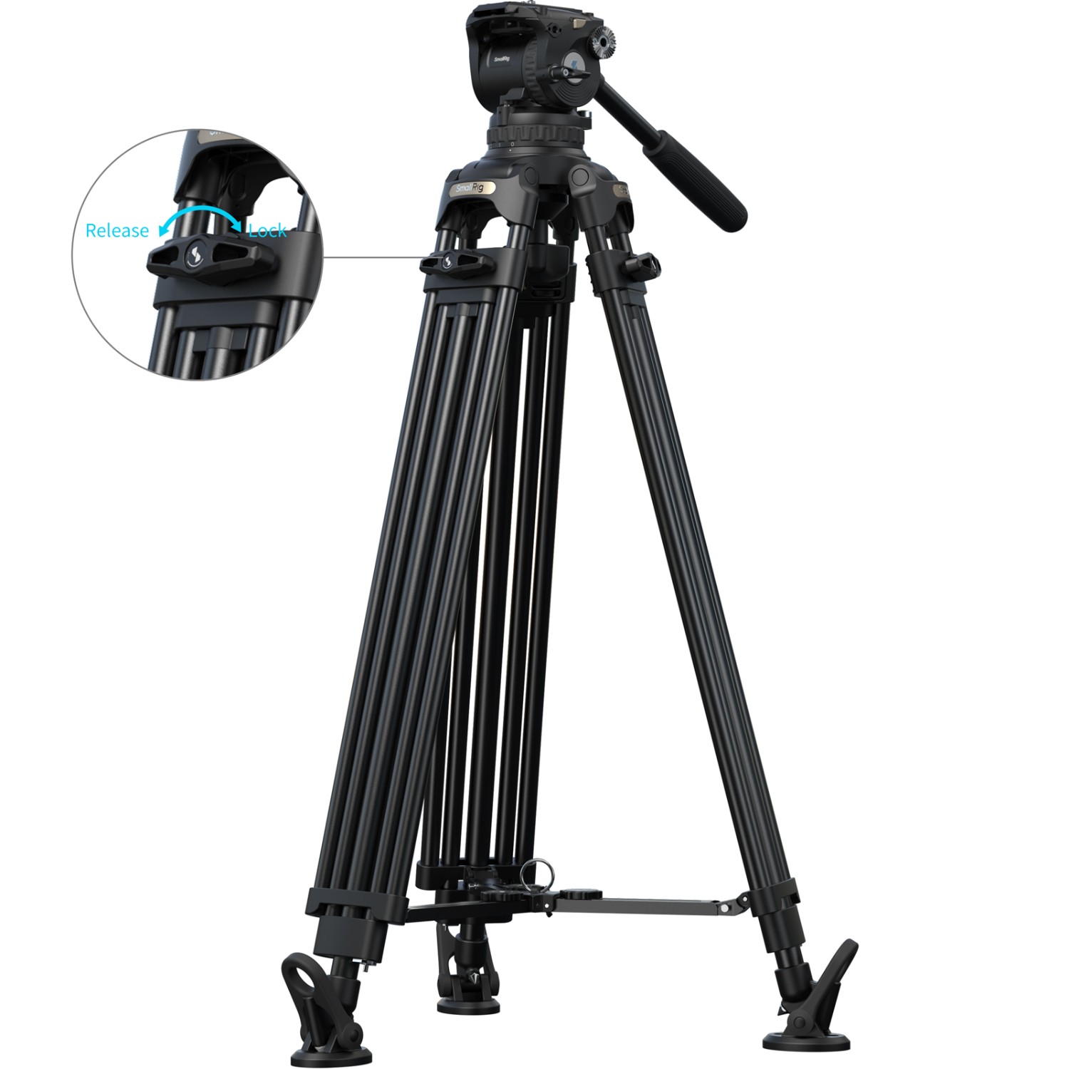 Das SmallRig FSD18 FreeSpeed Heavy-Duty-Stativ 5577 aus Aluminiumlegierung wurde für professionelle Videografen und Kameraleute entwickelt, die zuverlässige Stabilität und reibungslose Kamerabewegungen unter schweren Lasten suchen. Seine dreiteiligen Beine aus Aluminiumlegierung (Ø 18 mm) mit einer 2-2-1-Segmentkonfiguration und einer standardmäßigen 100-mm-Schalenbasis sorgen für eine stabile Plattform für den Betrieb eines Fluidkopfes. Das Stativ verfügt über einen Ein-Schritt-Knopf zum Ausfahren der Beine für schnelle Höhenverstellungen, was die Einrichtung und den Arbeitsablauf vor Ort optimiert.