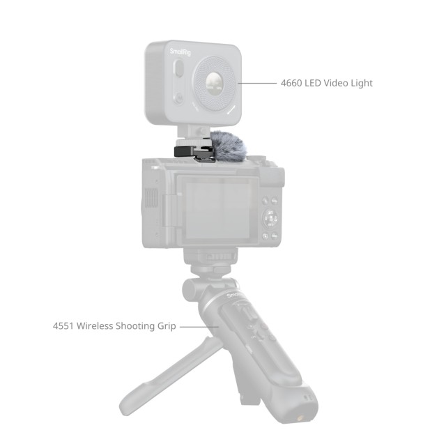 Mit der integrierten Cold-Shoe-Halterung an der Oberseite des Windschutzes können Sie Ihr Setup um kompatible Kleinzubehörteile wie Mikrofone (ID 3468), Zusatzleuchten (ID 4660) und mehr erweitern.
