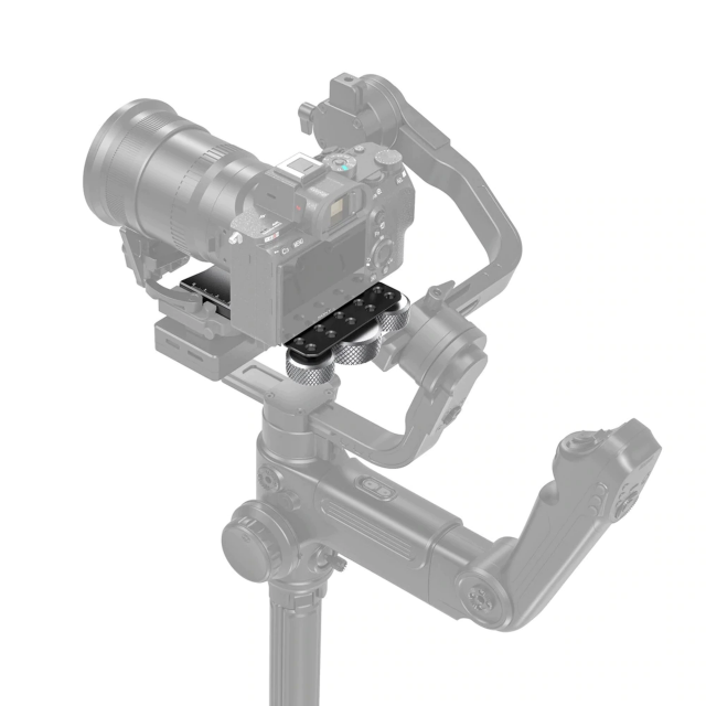 DieSmallRig Gegengewichts-Montageplatte für den Zhiyun CRANE 3 LAB Handstabilisator BSS2402 ersetzt die Original-Kameraplatte, die mit dem Crane 3 geliefert wird, und ermöglicht es Ihnen, eine frontlastige Kamera durch Hinzufügen von Gegengewichten auf der Rückseite auszugleichen. Die Platte wird an der Unterseite der Kamera mit einer 1/4"-Schraube oder einer 1/4"- und 3/8"-Schraube für Camcorder befestigt. Sie verfügt über Reihen von 1/4"-20-Gewindelöchern zur Aufnahme von Gegengewichten. Die optionalen Gegengewichte2459(50g), 2284(100g) und2285
