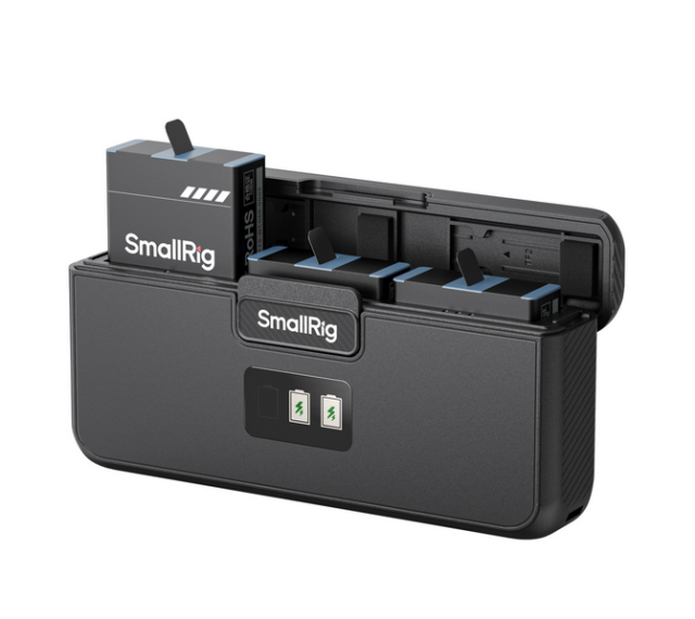 Das SmallRig GoPro Kamera-Akku-Kit 4565 enthält 3 Hochleistungsakkus mit 1720 mAh und ein Ladegehäuse mit PD 27W-Schnellladefunktion, TFT-Farbbildschirm zur Echtzeitüberwachung und Speicherplatz für Speicherkarten. Es bietet eine längere Ausdauer für GoPro HERO9, HERO10, HERO11 und HERO12 Kameras.