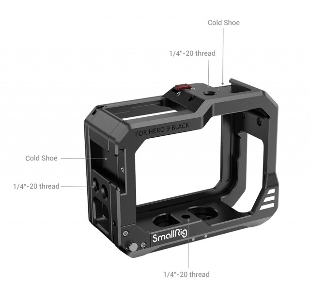 Das SmallRig 3084 Cage wurde speziell für die GoPro Hero 12, 11, 10 und 9 Modelle entwickelt und bietet robusten Schutz und verbesserte Funktionalität für Ihre Action-Kamera. Dieser Käfig verfügt über mehrere Cold Shoe-Halterungen an der oberen und rechten Seite zur Befestigung von Zubehör wie Mikrofonen und LED-Leuchten. Außerdem enthält er eine klappbare Halterung, die mit der originalen GoPro-Grundplatte kompatibel ist, sowie eine 1/4"-20-Gewindebohrung zur Befestigung am Stativ.