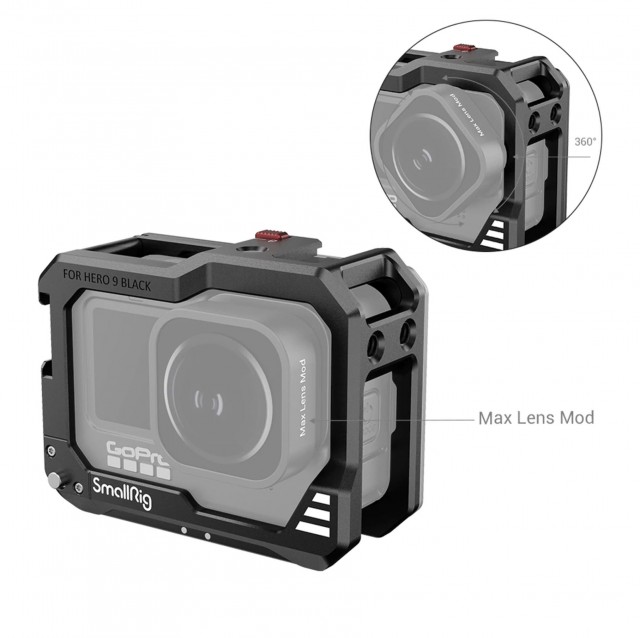 Der SmallRig 3084 Cage für die GoPro Hero 12/11/10/9 wurde zum Schutz Ihrer Action-Kamera entwickelt und bietet gleichzeitig mehrere Zubehörhalterungen und Kompatibilität mit Mikrofonadaptern. Der Käfig unterstützt Objektivwechsel und den Max Lens Mod mit einfacher Ver- und Entriegelung. Er verfügt über Cold Shoe-Halterungen, eine klappbare GoPro-Halterung und eine schnell zu öffnende Seitenwand für einfachen Zugang zum Akku.