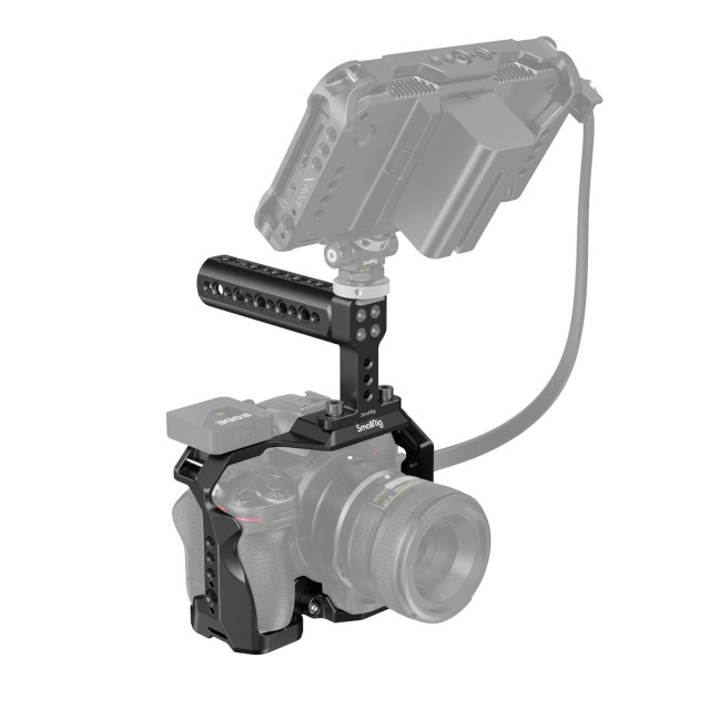 Das SmallRig Handheld Kit für Nikon Z 5/Z 6/Z 7/Z 6II/Z 7II 3721 wurde entwickelt, um Aufnahmen aus niedrigen Winkeln zu erleichtern, die Kamera zu schützen und Zubehörhalterungen bereitzustellen. Das Kit umfasst einen Vollkäfig, einen oberen Griff und eine FTZ-Objektivadapterhalterung. Der formschlüssige Vollkäfig bietet eine Vielzahl von Befestigungspunkten, wie z. B. 1/4''-20-Gewindebohrungen, ARRI 3/8" -16-Aufnahmebohrungen, Kühlschuhe, NATO-Schiene für Magic Arm, Seitengriff, LED-Licht und Mikrofon usw. Die FTZ-Objektivadapterhalterung reduziert den Druck auf den Objektivanschluss. Der obere Handgriff wird mit zwei 1/4"-20-Schrauben am Käfig befestigt und bietet eine bequeme und stabile Halterung für niedrige Aufnahmewinkel sowie Zubehörhalterungen wie 1/4"-20-Gewindebohrungen, ARRI 3/8"-16-Aufnahmebohrungen, Kühlschuhe, die Monitorhalterungen, den magischen Arm und anderes Zubehör unterstützen.