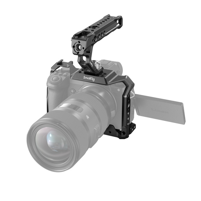 Das SmallRig Handheld Kit für Panasonic S5 3716 wurde entwickelt, um Aufnahmen aus niedrigen Winkeln zu erleichtern, die Kamera zu schützen und Zubehörhalterungen bereitzustellen. Das Kit umfasst einen Käfig und einen oberen Griff. Der obere Griff ist bequem, um die Kamera zu tragen und Aufnahmen aus einem niedrigen Winkel zu machen. die 1/4"-20-Gewindebohrungen unterstützen die Monitorhalterung 2294; der integrierte Kaltschuh ermöglicht die Befestigung von Mikrofonen, Leuchten usw.; die 3/8"-16-ARRI-Aufnahmebohrungen passen zur Monitorhalterung 2903; und die NATO-Schiene ist für NATO-Zubehör geeignet. Zusätzlich verfügt der Käfig über Gurtlöcher auf beiden Seiten. Zwei zugängliche magnetische Schraubendreher sind im Lieferumfang enthalten und erleichtern die Montage und Demontage.