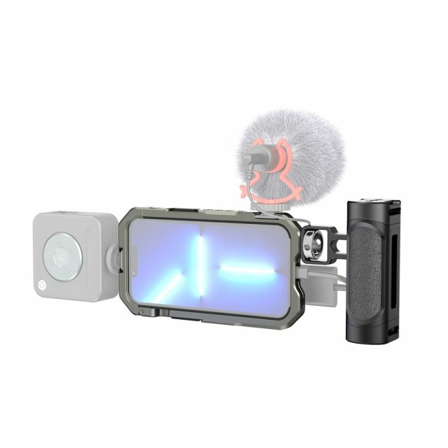 Das SmallRig Handheld Kit für iPhone 13 3735 ist ein perfektes Handy-Video-Rig für Vlogging, mobiles Filmen, Werbespots, etc. Das Kit wird mit einem speziell für das iPhone 13 entwickelten Käfig und einem seitlichen Griff für stabilere Handheld-Handyaufnahmen geliefert. Der Käfig verfügt über 1/4"-20 Anti-Twist-Gewindelöcher und kalte Schuhe, die Zubehör wie das Stativ BUT2429, das Mikrofon 3452 und die LED-Leuchte 3286 usw. unterstützen. Er unterstützt M-Mount-Objektive, um die Videoqualität zu verbessern. Das hohle Design ermöglicht den Zugang zu den iPhone-Tasten, Anschlüssen und dem Ultraweitwinkelobjektiv. Der Vollmetallkäfig mit eingebauten Unterlegscheiben verhindert Kratzer und reduziert Vibrationen. Der Käfig ermöglicht horizontale und vertikale Aufnahmen.
