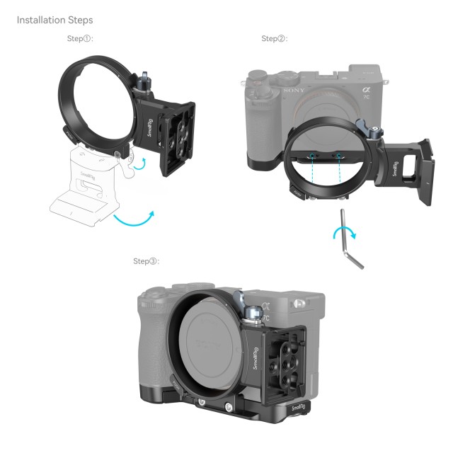 SmallRig Horizontal-to-Vertical Mount Plate Kit für Sony Alpha 7C II / Alpha 7CR 4570 wurde entwickelt, um schnell zwischen horizontalem und vertikalem Modus zu wechseln, ohne die optische Achse des Objektivs zu verstellen. Es wird an der Unterseite der Kamera mit einer 1/4"-20-Schraube und einem Verdrehschutzstift befestigt und bietet vollen Zugang zum LCD-Flip-Screen und zu den Anschlüssen sowie integrierte Polster, die Kratzer und Verdrehungen verhindern. Die Montageplatte ist mit dem Arca-Typ / Manfrotto RC2-Stativ kompatibel und kann durch Entriegeln eines Knopfes um 90 Grad gedreht werden, um zwischen horizontalen und vertikalen Aufnahmen zu wechseln. Die unteren 1/4"-20- und 3/8"-16-Gewindebohrungen unterstützen auch den Handgriff 2093C usw., um die Stabilität im Handheld-Modus zu erhöhen. Die Grundplatte kann je nach Bedarf separat verwendet werden, und der Scharnierarm an der Batteriefachabdeckung passt perfekt zum Kameragehäuse, um einen besseren Halt zu gewährleisten. Sie verfügt außerdem über einen Gurtschlitz, eine 1/4"-20-Gewindebohrung für den Handgelenkgurt, eine Schnellwechselplatte usw. sowie einen magnetischen Schlitzschraubendreher für eine einfache Montage und Demontage.