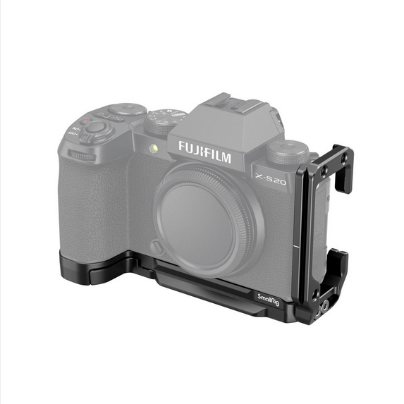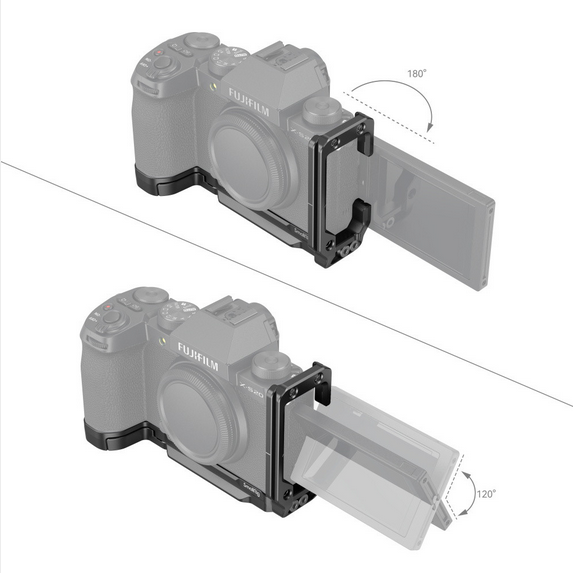 SmallRig L-Bracket für FUJIFILM X-S20 4231 wurde entwickelt, um den Wechsel zwischen horizontalen und vertikalen Aufnahmen zu erleichtern und das Griffgefühl zu verbessern. Die Halterung wird mit einer 1/4"-20 Schraube an der Unterseite der FUJIFILM X-S20 befestigt und verfügt über Gummipuffer, die Kratzer verhindern, sowie einen Scharnierarm am Batteriefach, der sich der Kamerakurve anpasst, um einen bequemen Griff zu ermöglichen. Das Produkt besteht aus einer Arca Swiss Bodenplatte und einer Seitenplatte. Auf der Bodenplatte befinden sich Arca Swiss Schnellwechselplatten für Arca-Typ Stative oder DJI RS 2 / RSC 2 / RS 3 / RS 3 Pro Gimbals, 1/4"-20 Gewindebohrungen zur Unterstützung der Side Handle 2093 & 3847 bei vertikalen Aufnahmen, auch Quick Release Plate 1280; Gurtlöcher für Hand Strap 3848 & 2456, und eingebaute QD-Halterungen auf der Unterseite für QD-Gurtschnalle. An der Seitenplatte befinden sich 1/4"-20-Gewindebohrungen für die Cold Shoe Mount BUC2736 für das Mikrofon. Die Seitenplatte unterstützt die HDMI-Kabelklemme 1693 für eine stabile Datenübertragung und kann auch um 22 mm gedehnt werden, um Kabel bei vertikalen Aufnahmen zu ermöglichen. Sie kann außerdem um 7,8 mm vor- und zurückgeschoben werden, um eine Öffnung des LCD-Klappbildschirms um 180 Grad und eine Drehung um 120 Grad zu ermöglichen. Außerdem ist ein magnetischer Inbusschlüssel für eine einfache Demontage und Montage enthalten.