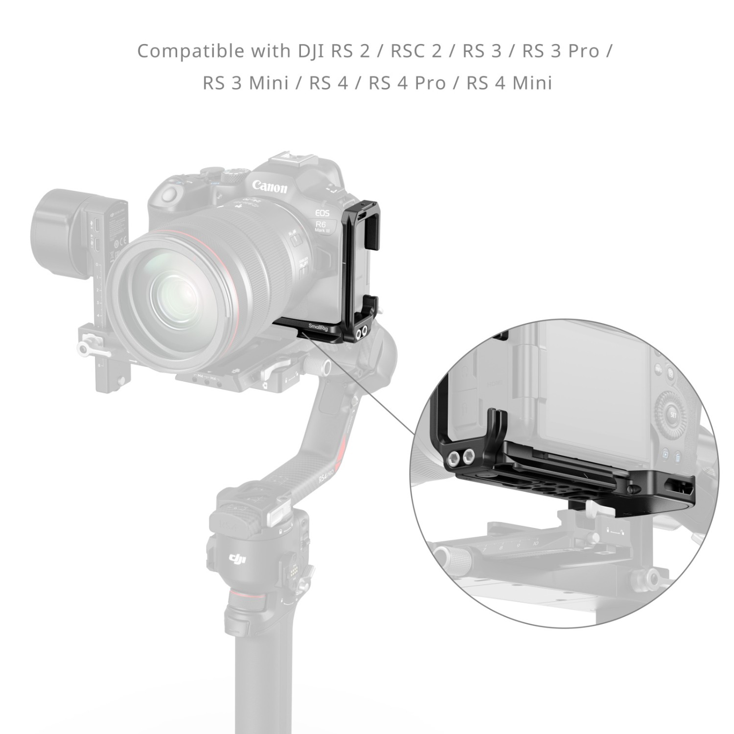 Die SmallRig 5962 L-förmige Montageplatte für Canon EOS R6 Mark III, R6 Mark II und R5 Mark II bietet eine vielseitige, sichere Befestigungslösung mit mehreren Befestigungspunkten für Zubehör. Sie verfügt über einen AirTag-Steckplatz, einen Arca-Swiss-Schnellverschluss und einen Kaltschuh-Positionierungsblock für Porträtaufnahmen. Sie wurde für eine einfache Kabelverwaltung und uneingeschränkten Zugriff auf die Kamerasteuerung entwickelt und eignet sich ideal für leichte Video- und Foto-Rigs.