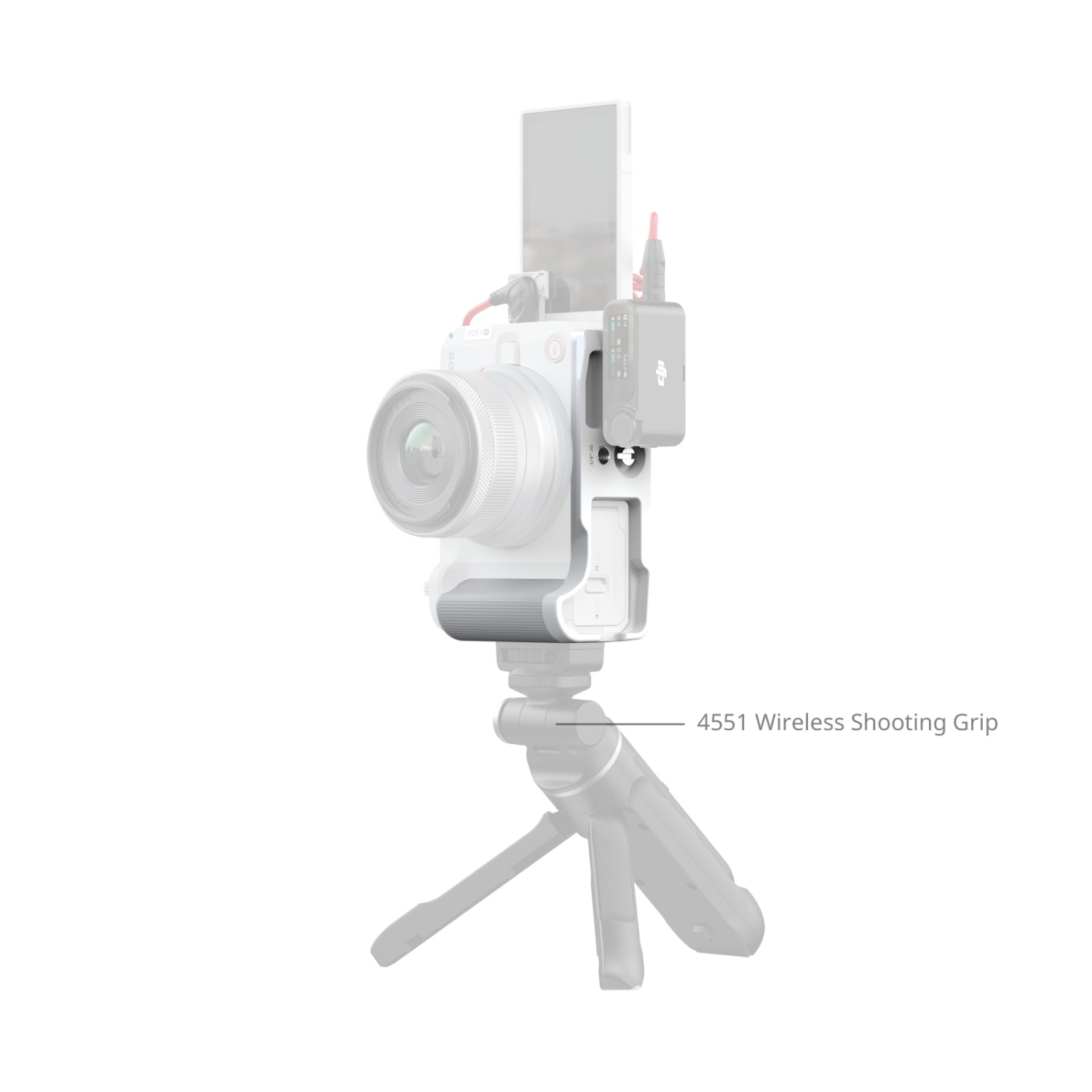 - Eingebauter Kaltschuhanschluss an der Unterseite zum Anbringen von Mikrofonen, Leuchten und anderem Zubehör im Hochformat;