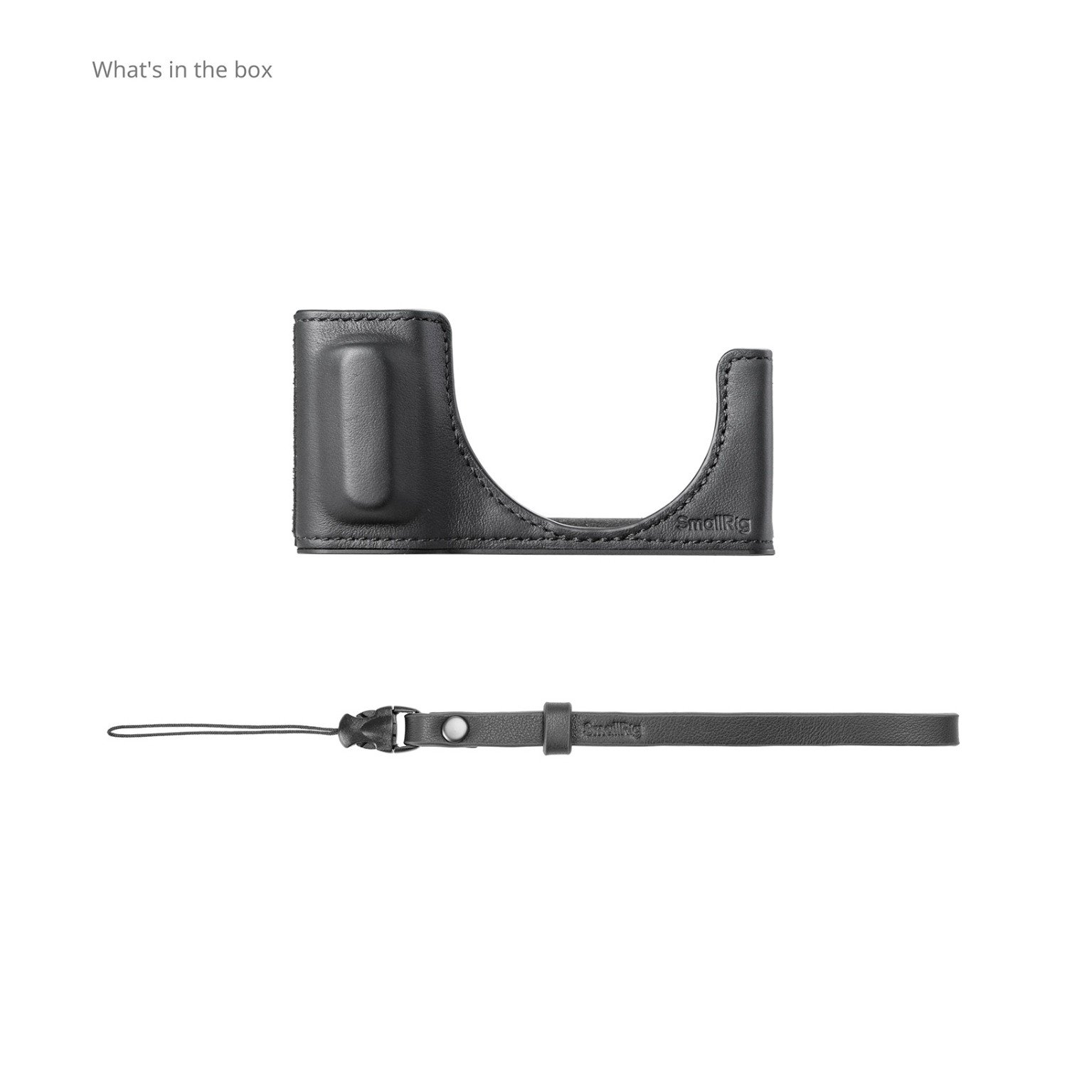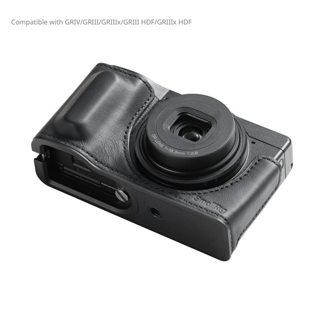 Die SmallRig 5676 Leder-Halbschale mit Handgelenkriemen für Ricoh GR IV (schwarz) kombiniert klassisches Retro-Design mit strapazierfähigem Leder und Aluminium und bietet verbesserten Halt, Schutz für die Kamera und uneingeschränkten Zugriff auf Bedienelemente und Akku.