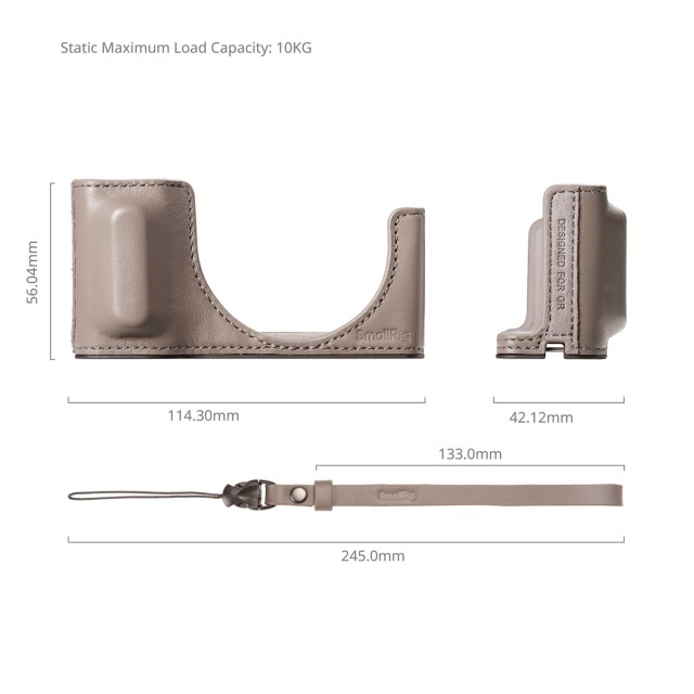 Die SmallRig 5677 Leder-Halbschale mit Handgelenkriemen wurde entwickelt, um Kameras der Ricoh GR-Serie zu schützen und aufzuwerten, während sie gleichzeitig ein elegantes, retro-inspiriertes Aussehen beibehält. Diese Halbschale aus hochwertigem Leder mit einer strapazierfähigen Aluminiumbasis verbessert den Griffkomfort und schützt das Kameragehäuse, ohne unnötig aufzutragen. Ihr präzises Design gewährleistet einen ungehinderten Zugang zu allen Kamerasteuerungen, Anschlüssen und dem Batteriefach für nahtloses Fotografieren.