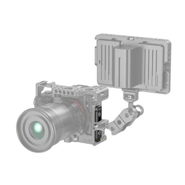 wird mit zwei 1/4''-20 Schrauben an Ihrem Kamerarig befestigt. Die 70 mm lange Schiene ist mit NATO-Zubehör wie Klemmen, Griffen und Monitorhaltern kompatibel und ermöglicht ein schnelles Anbringen und Lösen der Rig-Komponenten. Die Sicherheitsstifte an beiden Enden verhindern, dass das Zubehör versehentlich abrutscht.