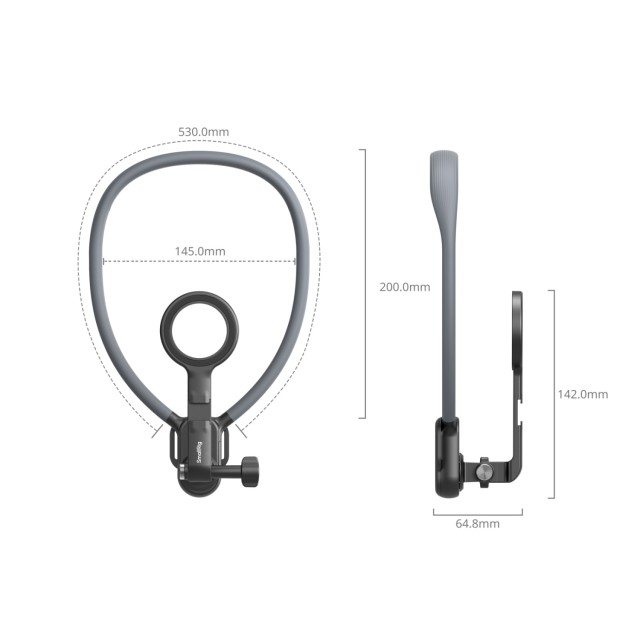 DieSmallRig MagSafe-kompatible Halshalterung 5127 wurde speziell für POV-Aufnahmen mit Mobiltelefonen entwickelt. Sie ermöglicht ein schnelles Anlegen mit einer Entriegelungstaste für eine mühelose Nutzung. Das Nackenband misst 600 mm (23,6 Zoll) in der Gesamtlänge und bietet ein stromlinienförmiges Design für einen bequemen Sitz.