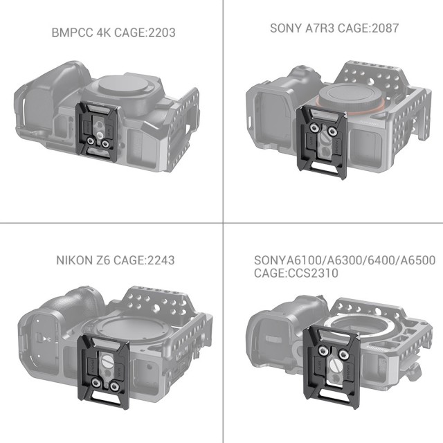 Hinweis: Die Platte ist derzeit mit den SmallRig-Käfigen kompatibel, wie auf dem Bild gezeigt.