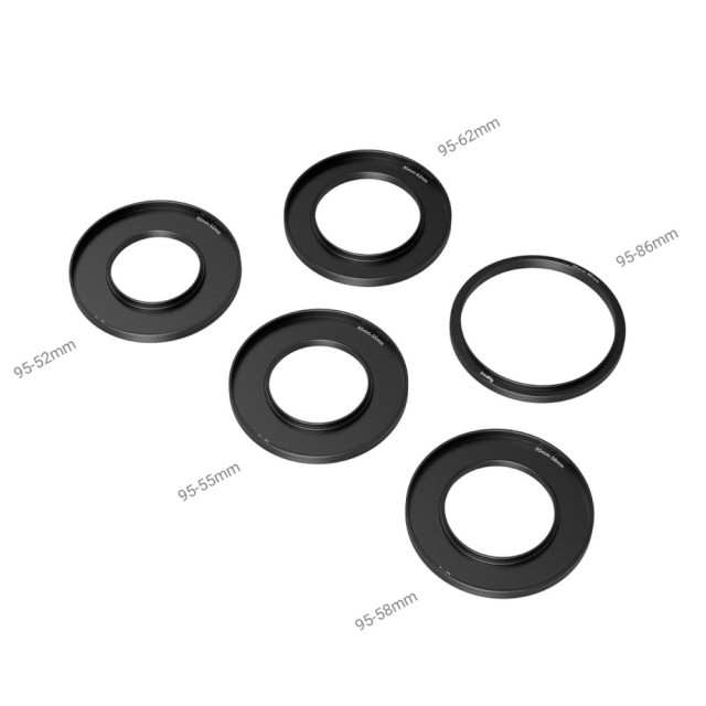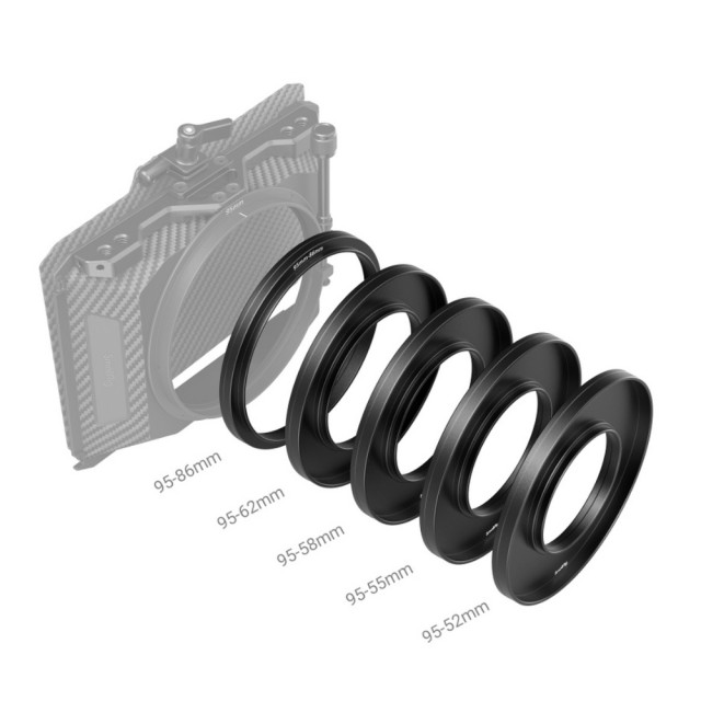 Das SmallRig Adapter Ring Set (Φ52/Φ55/Φ58/Φ62/Φ86-Φ95) 3383 ist ein optionales Zubehör, das mit der Mini Matte Box 3196 funktioniert. Seine Adapterringe lassen sich schnell an Standard-Φ52/Φ55/Φ58/Φ62/Φ86-Objektiven befestigen und dienen als solide Stütze für die Matte Box. Die Adapterringe passen das Design gegen Herausfallen an, verhindern ein versehentliches Ablösen und sorgen für sicheres und zuverlässiges Fotografieren beim Arbeiten mit der Mini Matte Box 3196. Sie sind mit einer breiten Palette von Rundfiltern kompatibel, einschließlich CPL- und ND-Filtern bis zu Φ92,5 mm, und lassen viel Platz für die schnelle Entfernung und Anpassung von CPL-Filterringen. Das Kit ist mit einer Vielzahl von Objektiven kompatibel und bietet dem Benutzer ein hervorragendes Aufnahmeerlebnis in Bezug auf schnelle Installation und Szenenwechsel.