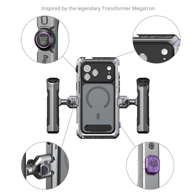 Das SmallRig Dual Handheld Video Kit für iPhone 17 Pro Max (Megatron Edition) 5584 ist eine professionelle Lösung für Handaufnahmen mit dem Mobiltelefon, die speziell für das iPhone 17 Pro Max entwickelt wurde und professionelle Videoaufnahmen, Live-Übertragungen und die Produktion von Kurzfilmen erleichtert.