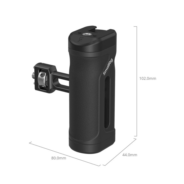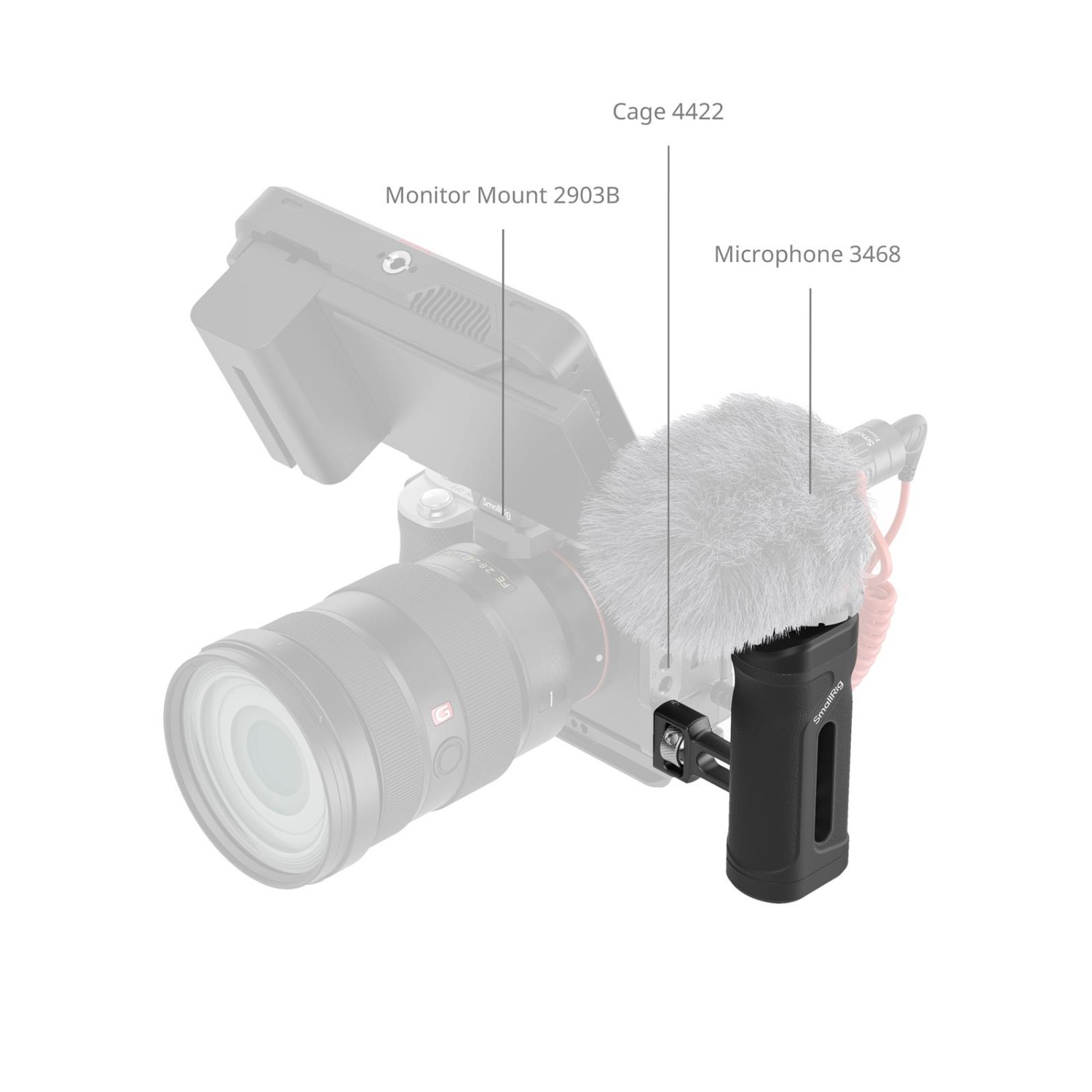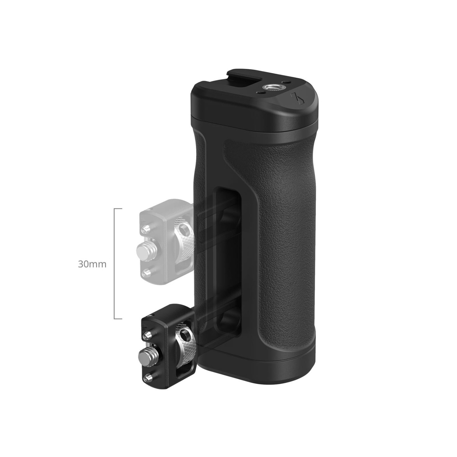 Der SmallRig Mini-Seitengriff mit 1/4''-20-Befestigungsschraube 5946 wurde für komfortables Filmen aus der Hand entwickelt. Er lässt sich mit 1/4"-20-Befestigungsschrauben sicher am Cage befestigen und bietet durch mehrere Schnittstellen vielseitige Erweiterungsmöglichkeiten. Dazu gehören 1/4''-20-Befestigungslöcher für Zubehör wie Fernbedienungen (ID 3902) oder Magic Arms (ID 3873) sowie Kaltschuhhalterungen für die Befestigung von Monitorhalterungen (ID 2905B), Mikrofonen (ID 3487) oder Videoleuchten (ID 3286B).